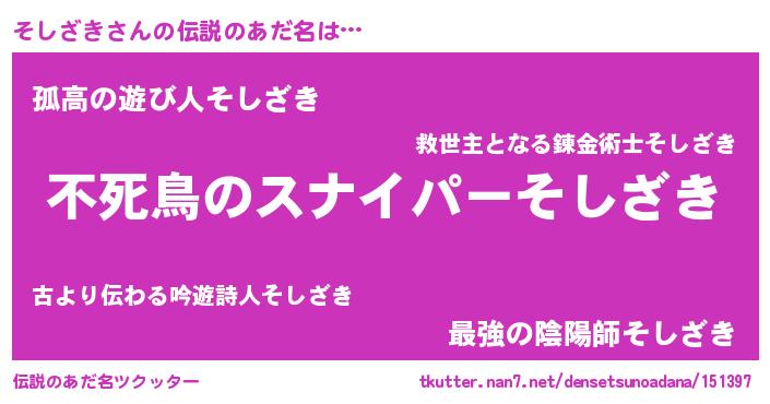 | 胡散臭い通販商品みたいなあだ名 | 『モテモテ間違いなし霊験あらたかなお札…その名も「そしざき」』 |