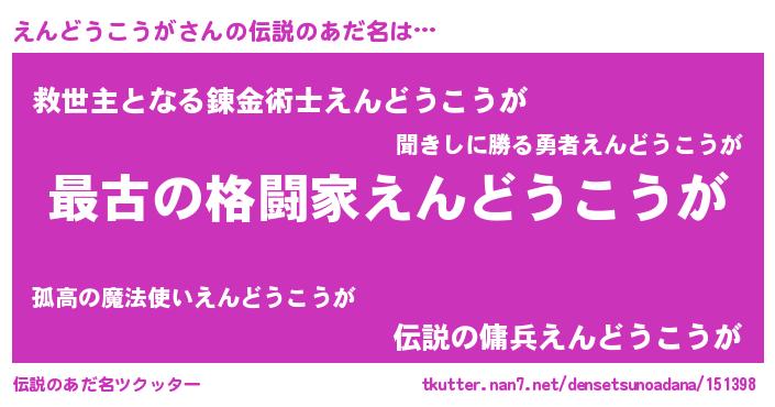 | ファンタジー風あだ名 | 『エターナルエンドウコウガー』 |