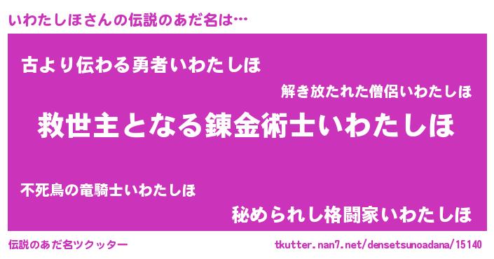 | 男性向けラノベタイトル風あだ名 | 『Re:いわたしほから始める異世界生活』 |