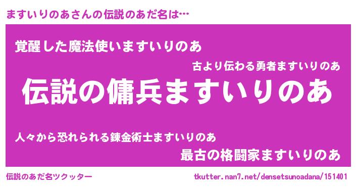 | 意味不明あだ名 | 『住所不定無職ますいりのあ(56歳)』 |