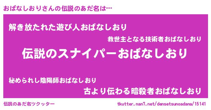 | ヒーロー風カッコイイあだ名 | 『スーパーオバナシオリ』『銀牙騎士オバ』 |