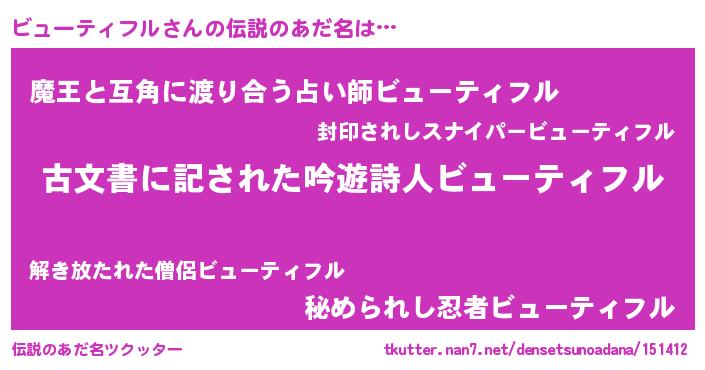 | 意味不明あだ名 | 『自称ビューティフル』 |