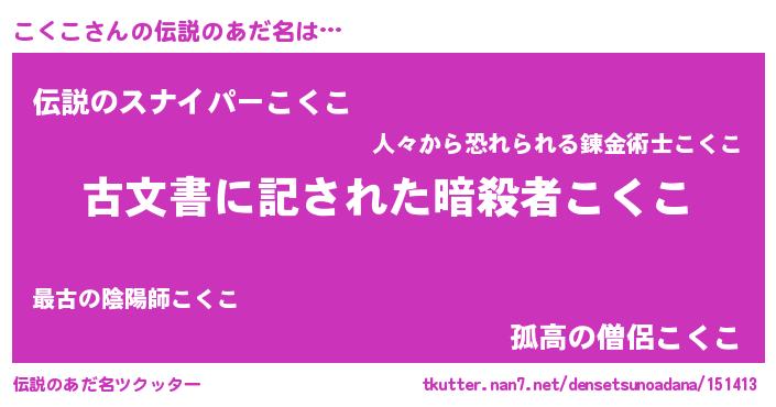 | ヒーロー風カッコイイあだ名 | 『ネオコクコ』『スーパーコクコ』 |