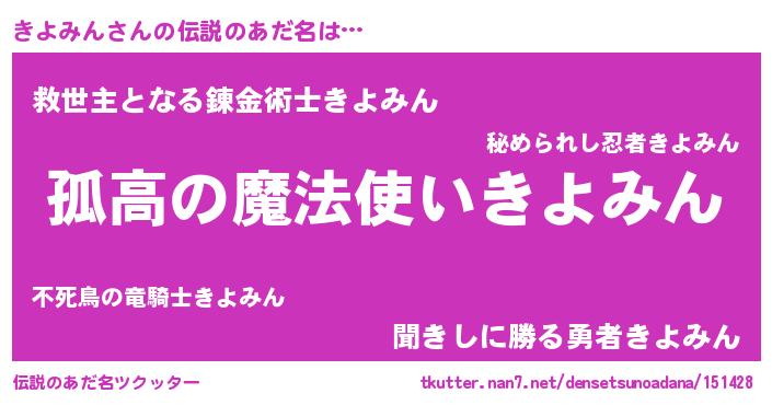 | 女子向けラノベタイトル風あだ名 | 『きよみんは平凡を望む』『闇のきよみん』 |