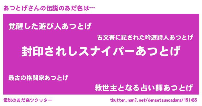 | 意味不明あだ名 | 『ペロリンあつとげ』『自称あつとげ』 |