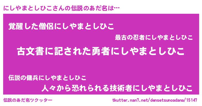 | 意味不明あだ名 | 『永久保存にしやまとしひこ』 |