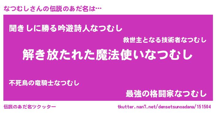 | 意味不明あだ名 | 『とにかく怪しいなつむし』 |