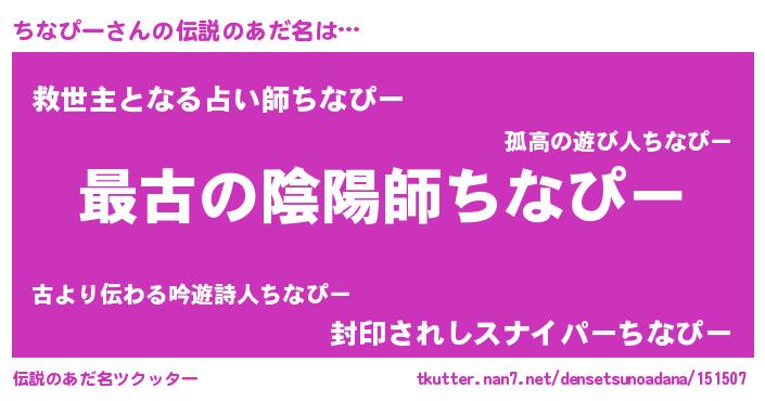| 意味不明あだ名 | 『なめこ科ちなぴー属』『自称ちなぴー』 |