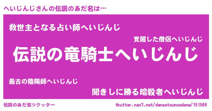 | 意味不明あだ名 | 『住所不定無職へいじんじ(7歳)』 |