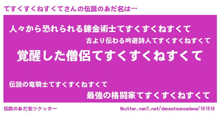 | 意味不明あだ名 | 『住所不定無職てすくすくねすくて(56歳)』 |