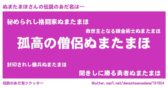 | 意味不明あだ名 | 『とにかく怪しいぬまたまほ』 |