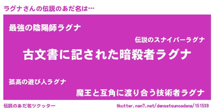 | 意味不明あだ名 | 『永久保存ラグナ』『ラグナフォーエバー』 |