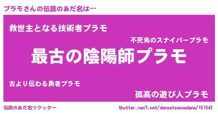 | ファンタジー風あだ名 | 『カークプララー』『エターナルプラモー』 |