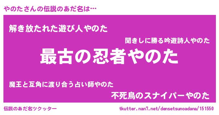 | 意味不明あだ名 | 『やのたフォーエバー』『自称やのた』 |