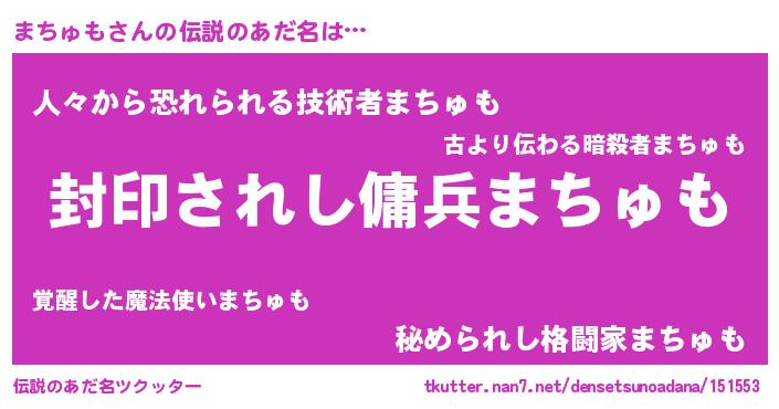 | 意味不明あだ名 | 『自称まちゅも』『ペロリンまちゅも』 |