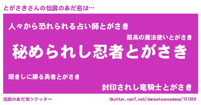 | ヒーロー風カッコイイあだ名 | 『ウルトラとがさきマン』『銀牙騎士トガ』 |