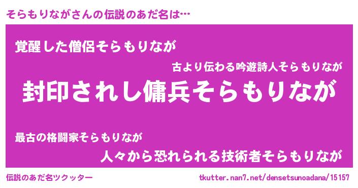 | 男性向けラノベタイトル風あだ名 | 『ソラモリナガアートオンライン』 |