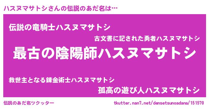 | ファンタジー風あだ名 | 『エターナルハスヌマサトシー』 |