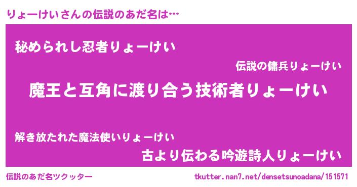 | ヒーロー風カッコイイあだ名 | 『愛の使者りょーけい』『仮面リョダー』 |