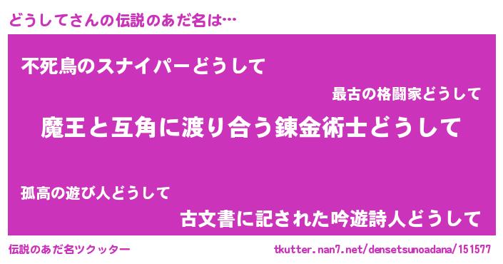 | ヒーロー風カッコイイあだ名 | 『慈愛の使者どうして』『ネオドウシテ』 |
