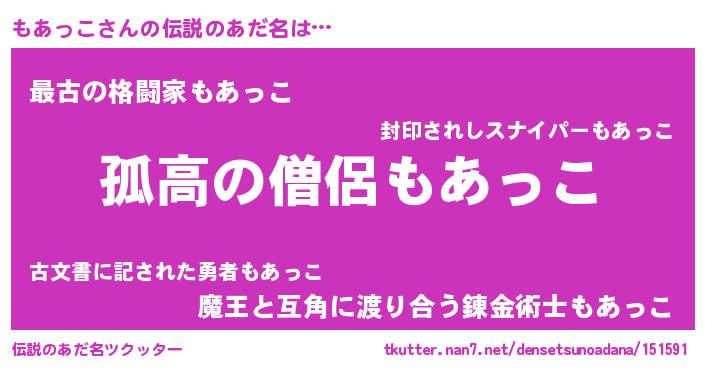 | ヒーロー風カッコイイあだ名 | 『黄金騎士モア』『ウルトラもあっこマン』 |