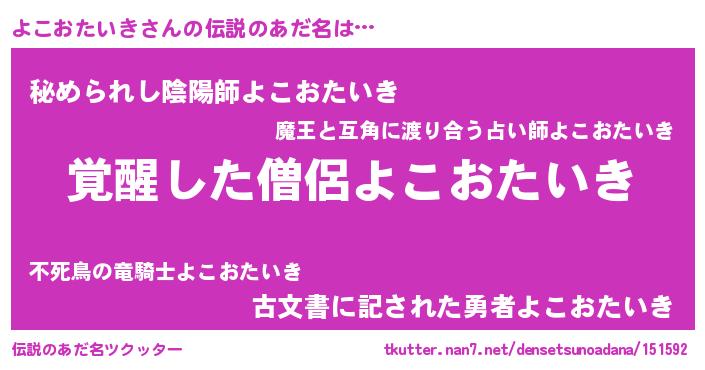 | 意味不明あだ名 | 『住所不定無職よこおたいき(43歳)』 |