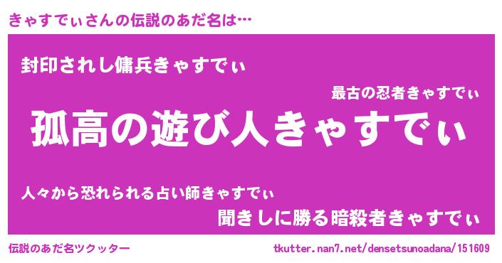 | 女子向けラノベタイトル風あだ名 | 『きゃすでぃは平凡を望む』 |