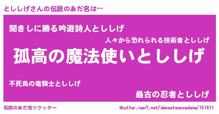 | 男性向けラノベタイトル風あだ名 | 『ダンジョンにとししげを求めるのは間違っているだろうか』 |