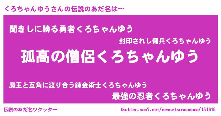 | ヒーロー風カッコイイあだ名 | 『暗黒騎士クロ』『ネオクロチャンユウ』 |