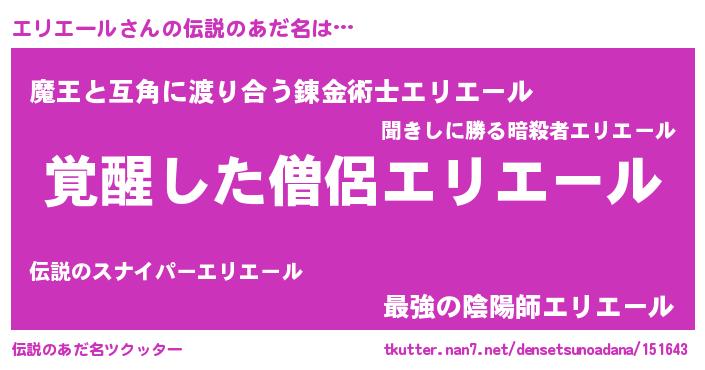 | ファンタジー風あだ名 | 『ユリエリヴァット』『ファントムエリス』 |
