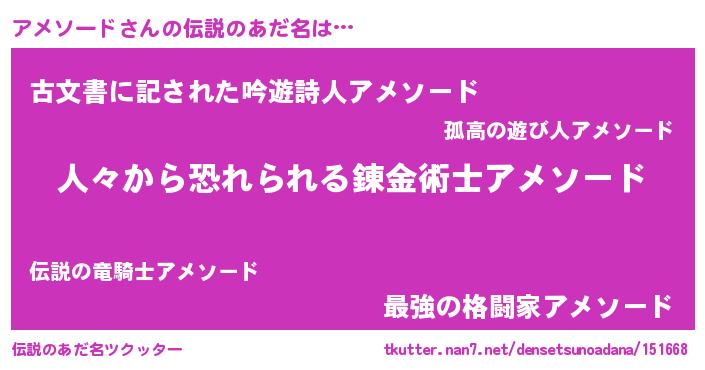 | ヘコむあだ名 | 『アメソード(震え声)』『豆乳』 |