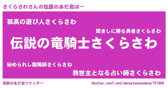 | 胡散臭い通販商品みたいなあだ名 | 『必ず成功するブレスレット…その名も「さくらさわ」』 |