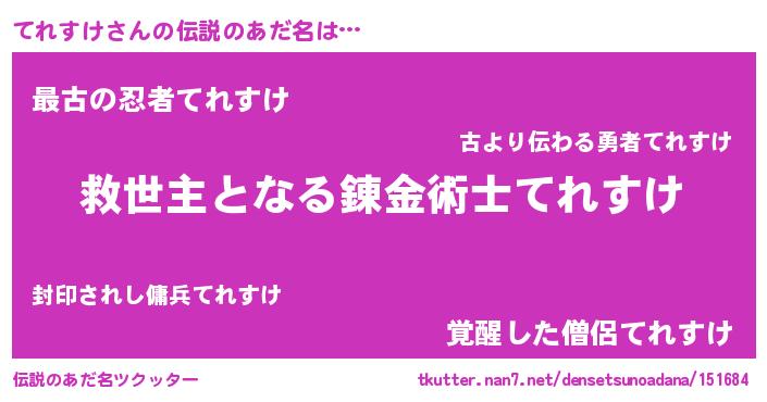 | ヒーロー風カッコイイあだ名 | 『天空の使者てれすけ』『仮面テレダー』 |