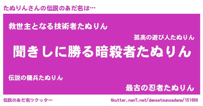 | 意味不明あだ名 | 『永久保存たぬりん』『自称たぬりん』 |