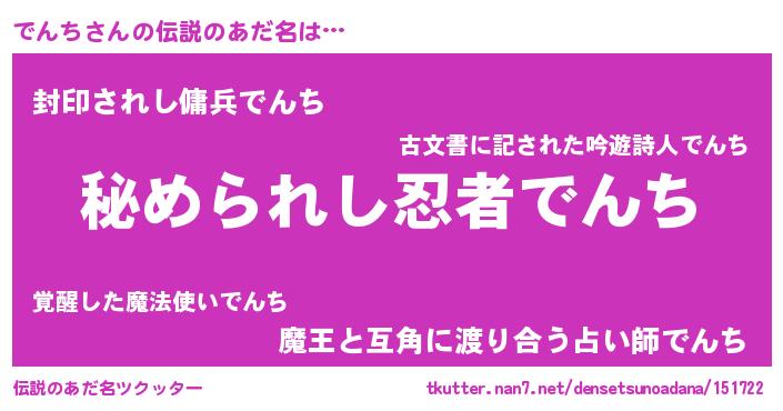 | ヒーロー風カッコイイあだ名 | 『仮面デンダー』『ウルトラでんちマン』 |