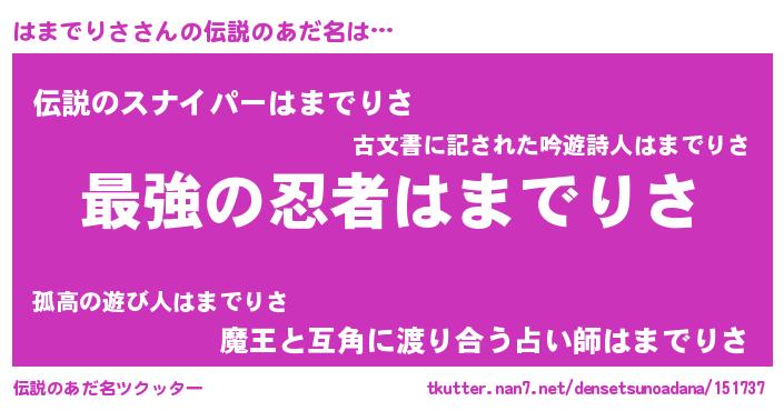 | 意味不明あだ名 | 『はまでりさフォーエバー』 |