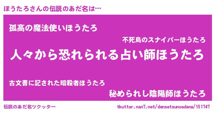 | 女子向けラノベタイトル風あだ名 | 『ほうたろなんてお断りですっ。』 |