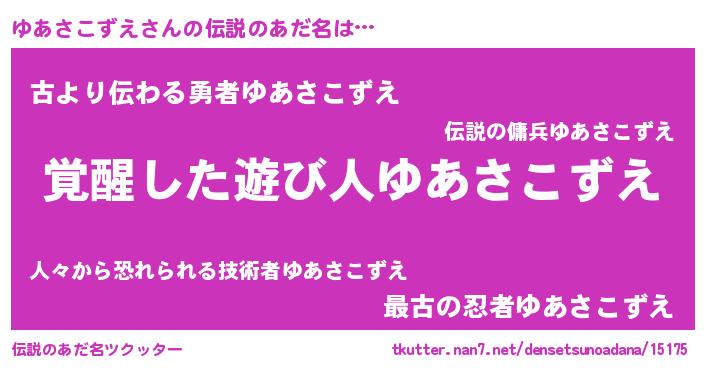 | 意味不明あだ名 | 『とにかく怪しいゆあさこずえ』 |