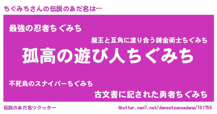 | ヒーロー風カッコイイあだ名 | 『黄金騎士チグ』『ウルトラちぐみちマン』 |