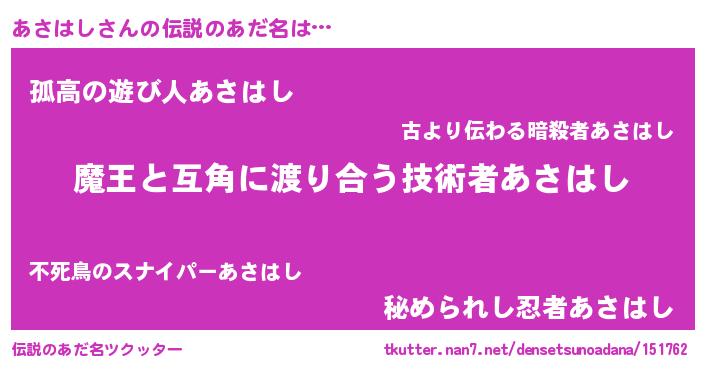 | ヒーロー風カッコイイあだ名 | 『友情の使者あさはし』『暗黒騎士アサ』 |