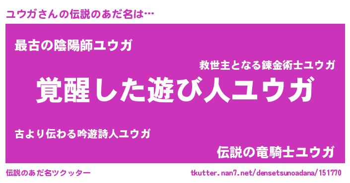 | ヒーロー風カッコイイあだ名 | 『炎刃騎士ユウ』『仮面ユウダー』 |