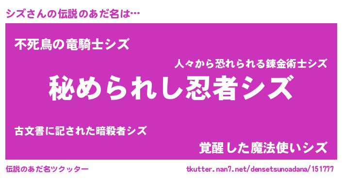 | ファンタジー風あだ名 | 『エターナルシズー』『シズフェル』 |