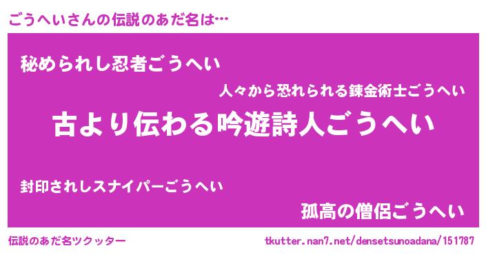 | 意味不明あだ名 | 『住所不定無職ごうへい(1歳)』 |