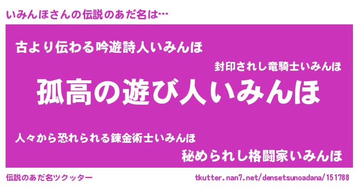 | ヒーロー風カッコイイあだ名 | 『暗黒騎士イミ』『ウルトラ戦士イミンホ』 |