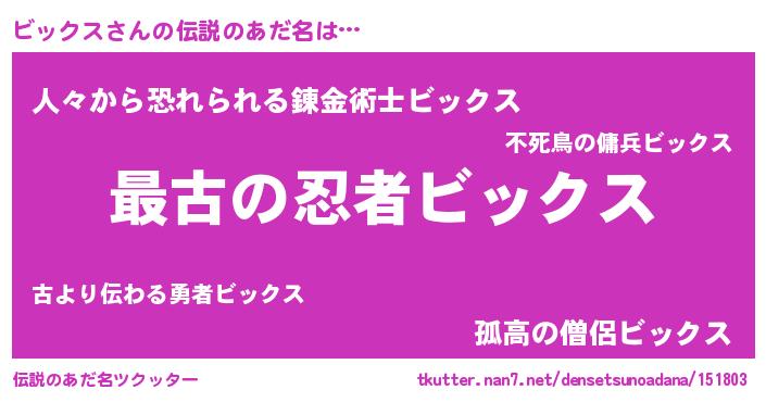 | 意味不明あだ名 | 『住所不定無職ビックス(62歳)』 |