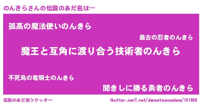 | ヒーロー風カッコイイあだ名 | 『仮面ノンダー』『超時空戦士ノンキラ』 |