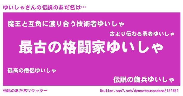 | 意味不明あだ名 | 『ゆいしゃフォーエバー』『自称ゆいしゃ』 |