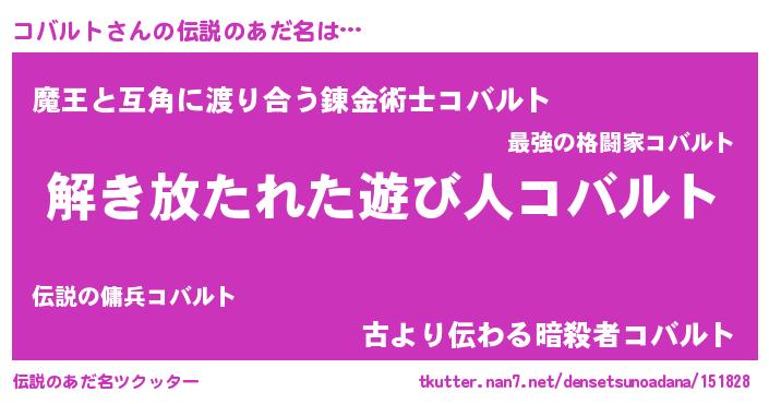 | ファンタジー風あだ名 | 『ゼコバトゥ』『カークコバラー』 |