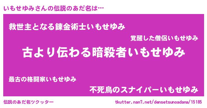 | 胡散臭い通販商品みたいなあだ名 | 『来世でも幸せになれる健康食品…その名も「いもせゆみ」』 |