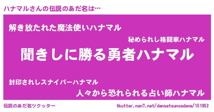 | 意味不明あだ名 | 『永久保存ハナマル』 |